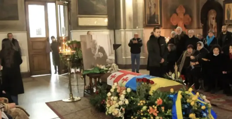 Гроб популярного грузинского актера Вахтанга Кикабидзе, который умер 15 января в возрасте 84 лет, по решению семьи был украшен двумя флагами - грузинским и украинским. Это стало возможным потому, что прощание с легендарным актером проходило в Тбилиси.