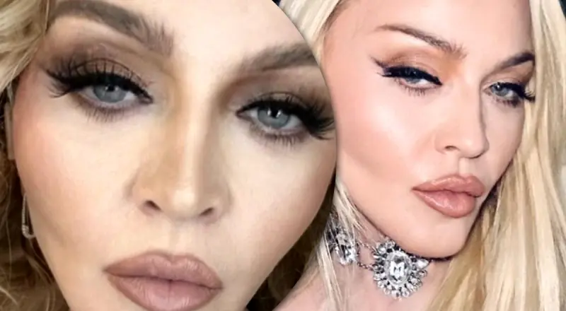 Мадонна на фото выглядит молодо благодаря пухлым губам, четкому овалу лица, светлому цвету волос, а также подтянутой фигуре.