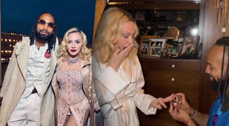На странице Мадонны в TikTok появилось видео, на котором Аким стоит перед ней на одном колене, и протягивает коробочку с кольцом. Удивленная поп-дива достает украшение, надевает его на безымянный палец, а затем показывает в камеру средний - кольцом оказался брелок с футбольным мячом. "Я сказала "Гол", - подписала видео Мадонна.